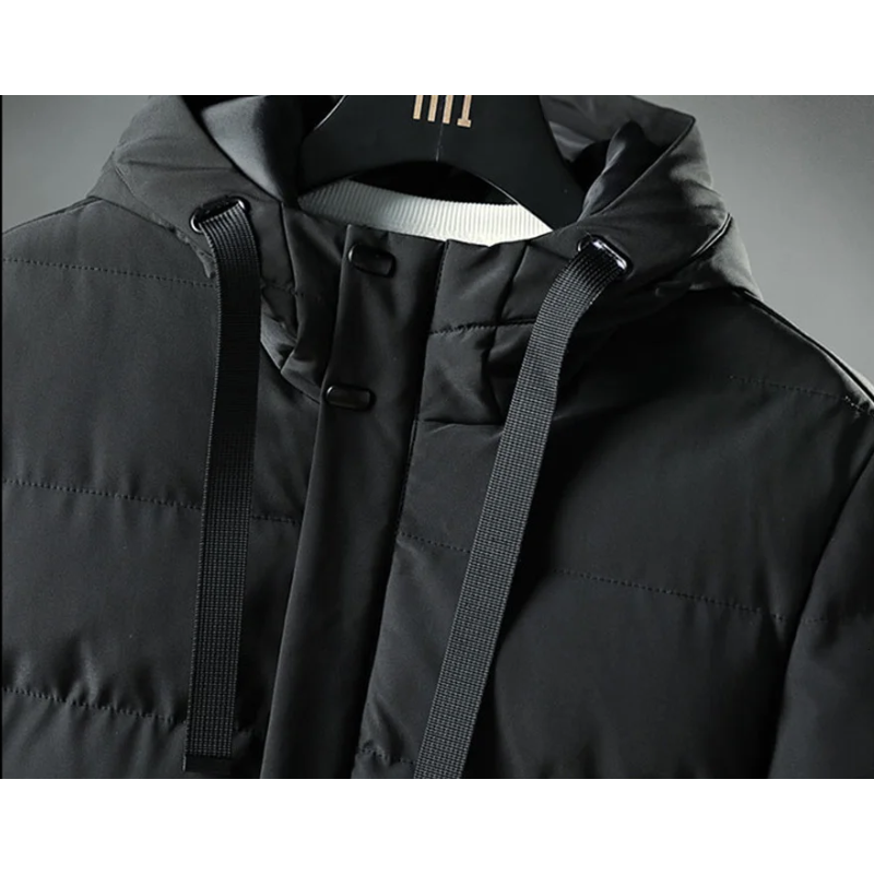 Adrien | Langer Wintermantel für Herren mit Kapuze, Reißverschlusstaschen und wasserabweisender Beschichtung