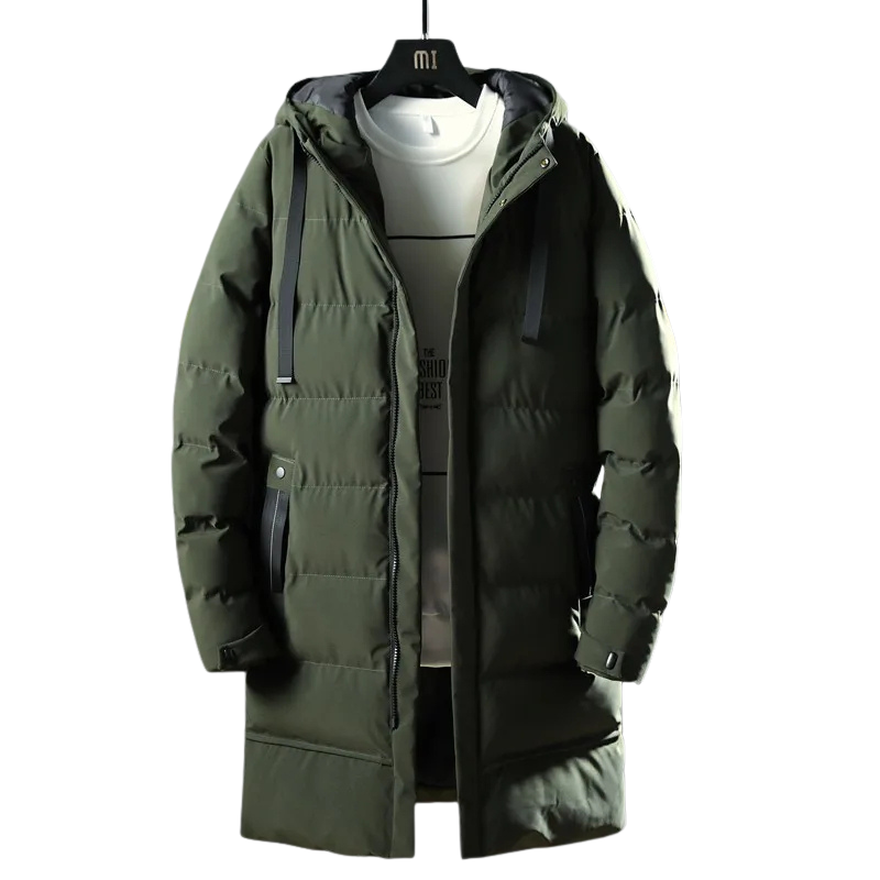 Der Adrien lange Wintermantel für Herren bietet optimalen Schutz bei kaltem und nassem Wetter. Mit einer wasserabweisenden Beschichtung, einer schützenden Kapuze und praktischen Reißverschlusstaschen vereint dieser Mantel Funktionalität und modernes Design. Perfekt für den Alltag, Spaziergänge oder den Weg zur Arbeit – der Adrien Mantel hält Sie warm und trocken, ohne Kompromisse beim Stil einzugehen.