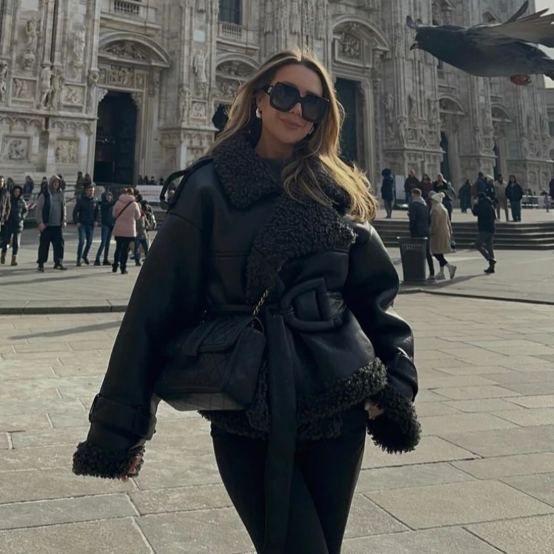 Alberta | Modischer Kunstledermantel – dick, warm und flauschig für Damen