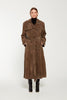 Der Trenchcoat besteht aus hochwertigem Wildleder, das für seine Weichheit und Haltbarkeit bekannt ist. Das Material fühlt sich nicht nur luxuriös an, sondern bietet auch einen hervorragenden Schutz vor den kühleren Temperaturen in der Übergangszeit.