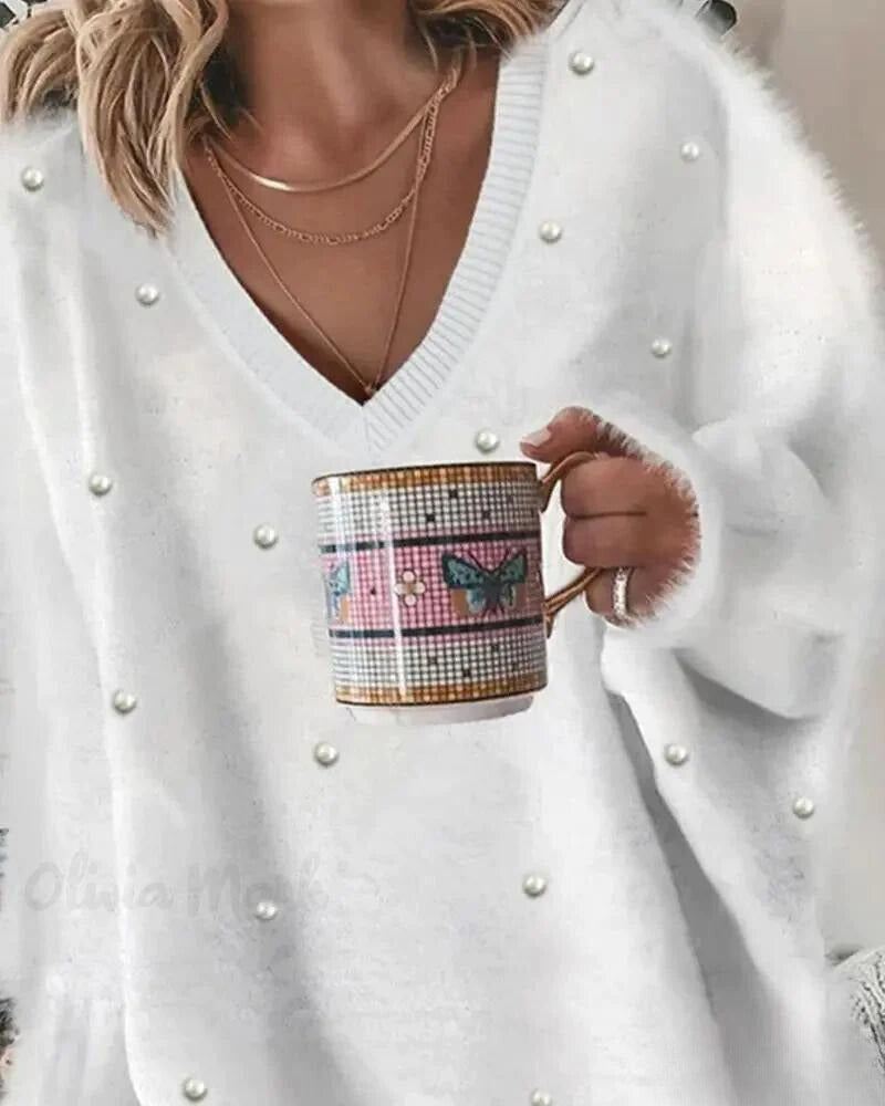 Kin | Langärmeliges flauschiges Top mit Perlen