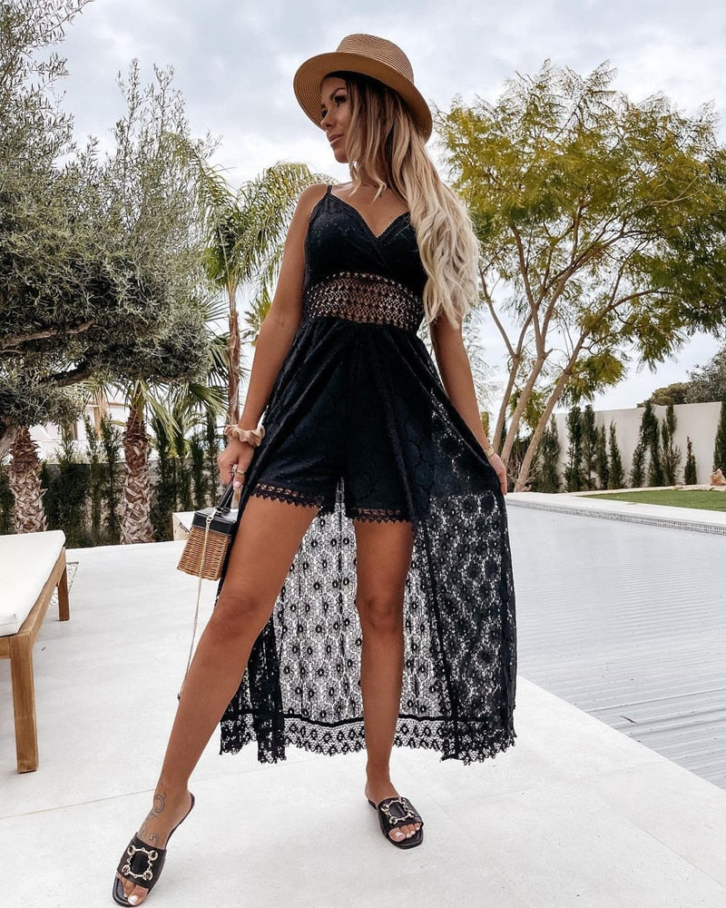 Der elegante höhlenförmige Spitzen-Overall für einen stilvollen Auftritt