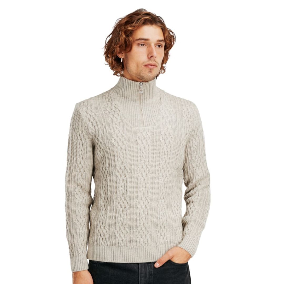 Der Urooj Klassische Kabelstrick Coltrui mit Reißverschlussdetail vereint zeitlose Eleganz mit zeitgemäßem Komfort. Der klassische Kabelstrick und das elegante Reißverschlussdetail machen diesen Pullover zu einem Must-Have für die kalte Jahreszeit.