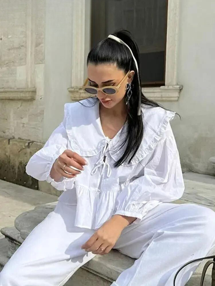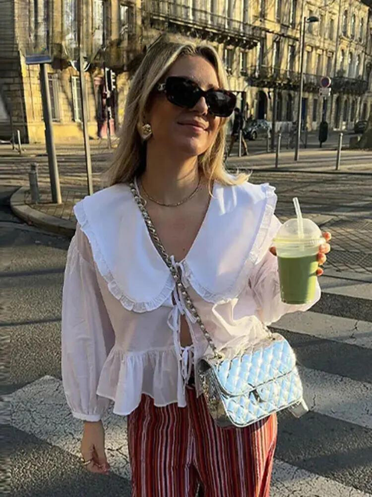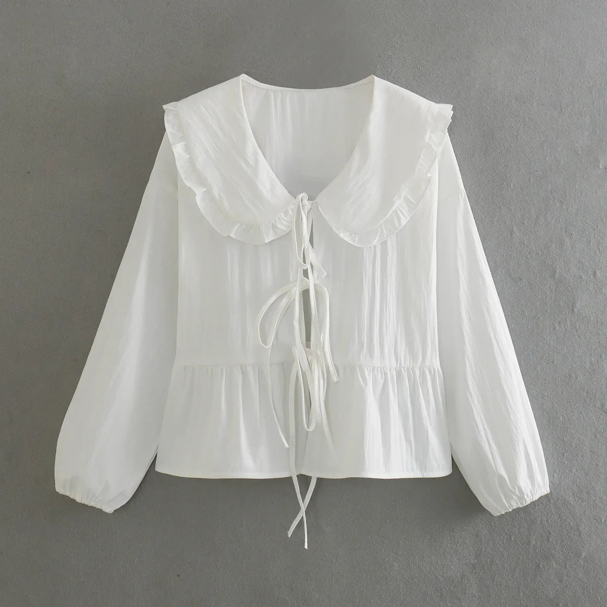 Die Maurra Spitzenbluse mit Schnürung vereint süßes Design mit raffinierter Eleganz. Perfekt für modebewusste Frauen, die auf der Suche nach einem stilvollen und femininen Kleidungsstück sind.