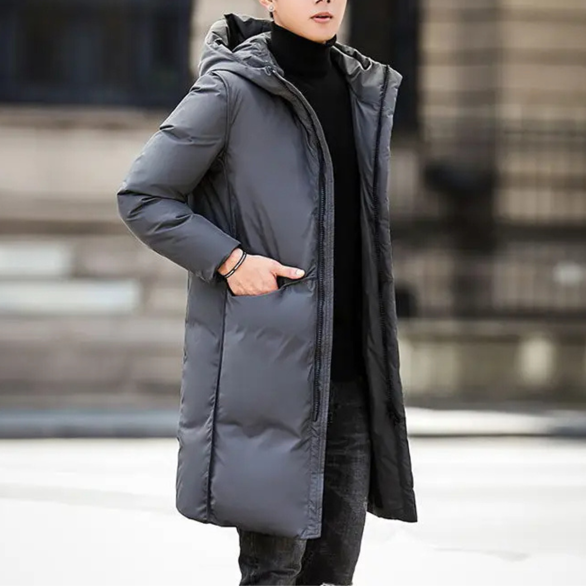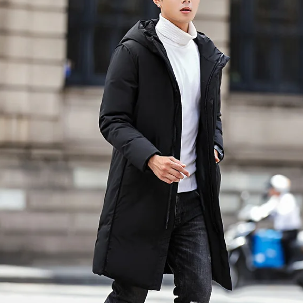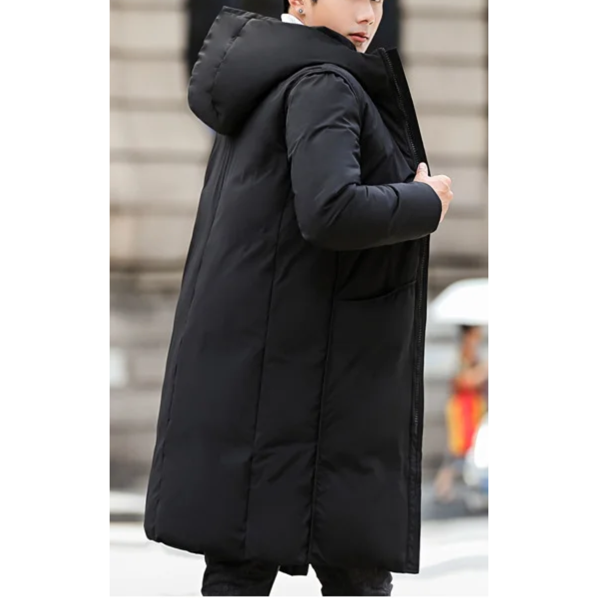Fabien | Langer Herren-Wintermantel, leicht und wattiert, mit Kapuze