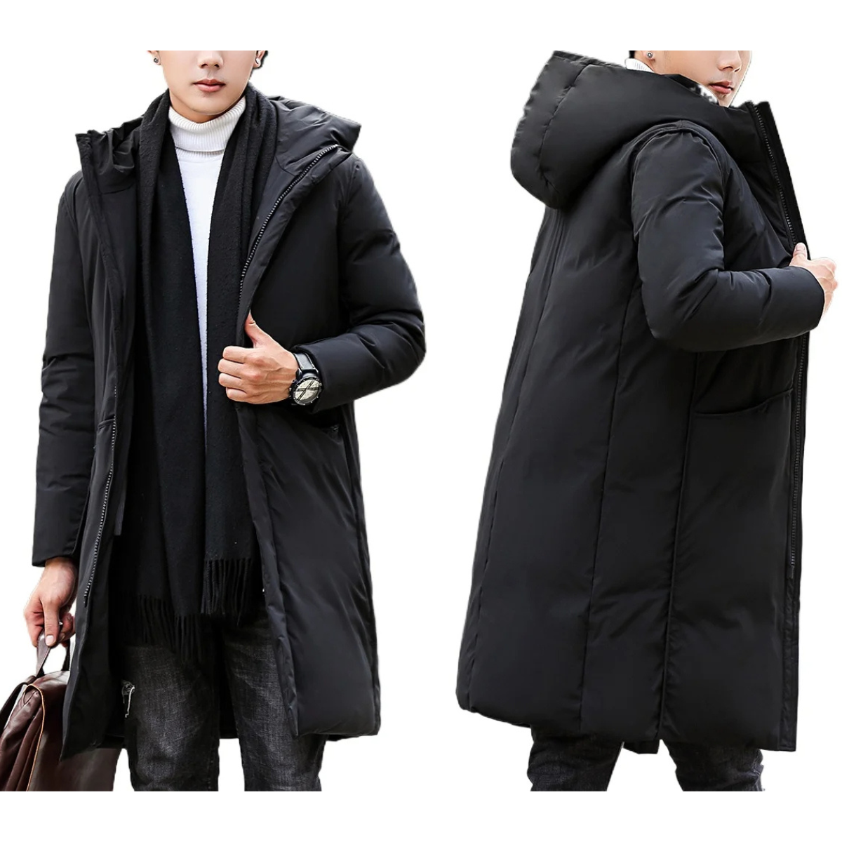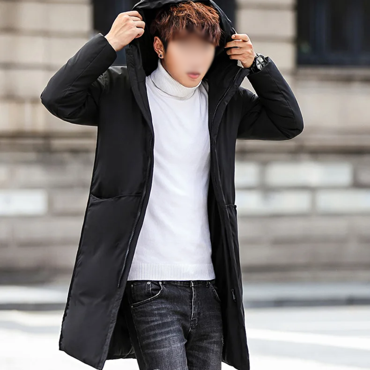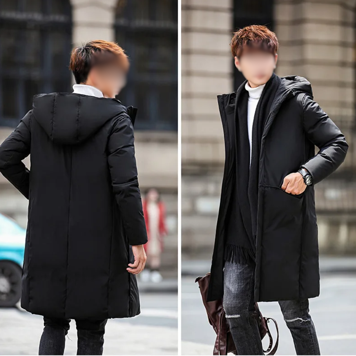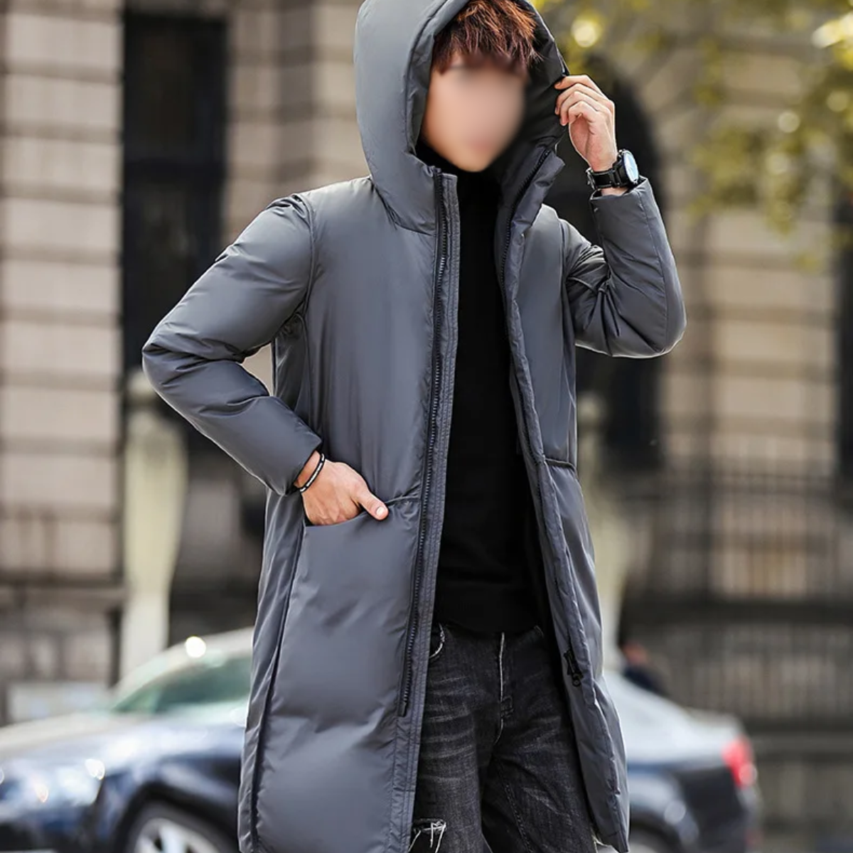 Fabien | Langer Herren-Wintermantel, leicht und wattiert, mit Kapuze