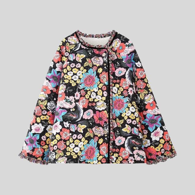 Das Uzaer Komfortable Gewattete Jackett mit Reißverschluss und Blumenprint kombiniert hervorragenden Tragekomfort mit einem modischen Design. Dieses Jackett bietet nicht nur Wärme und Bequemlichkeit, sondern auch einen trendigen Blumenprint, der Ihrem Outfit eine besondere Note verleiht. Der praktische Reißverschluss sorgt für einfache Handhabung und zusätzlichen Komfort.