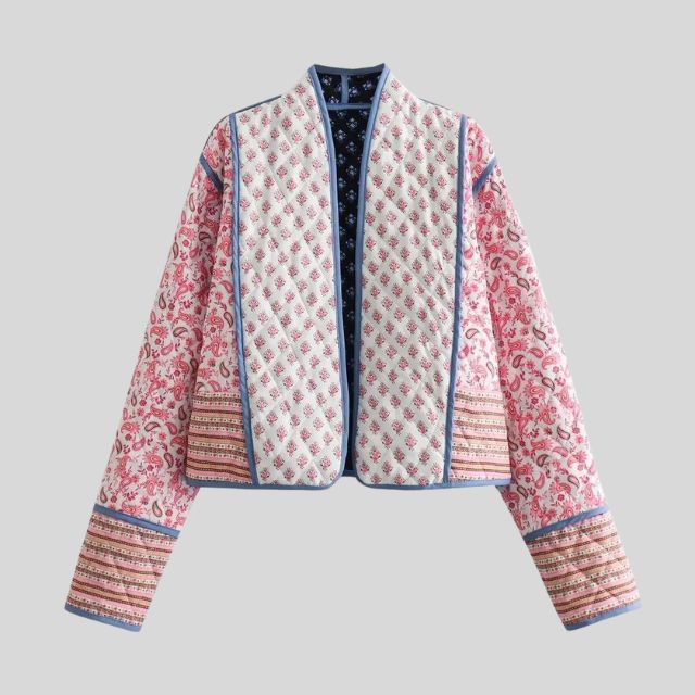 Uzaer | Komfortables Gewattetes Jackett mit Reißverschluss und Blumenprint