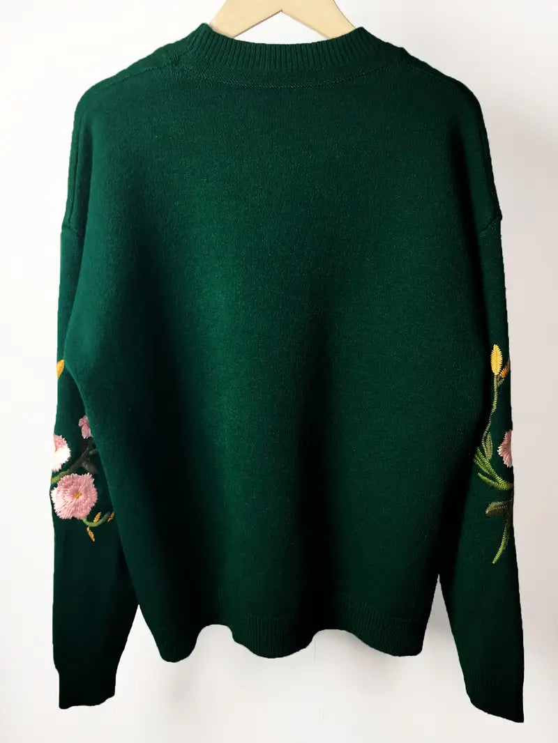 Greni | Gemütlicher Crew-Pullover mit Blumenstickerei und Strickmuster
