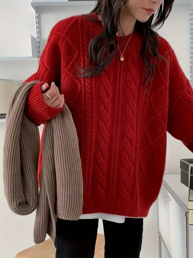 Der Gemue Pullover ist die ideale Wahl für Damen, die zeitlose Mode mit einem Hauch von Wärme suchen. Hergestellt aus hochwertigem Grobstrickmaterial, bietet dieser Pullover nicht nur ein weiches Tragegefühl, sondern auch eine robuste Verarbeitung, die Langlebigkeit garantiert. Das auffällige, einfarbige Rot und der klassische Rundhalsausschnitt machen ihn vielseitig kombinierbar – sei es für einen entspannten Look oder einen modischen Auftritt.