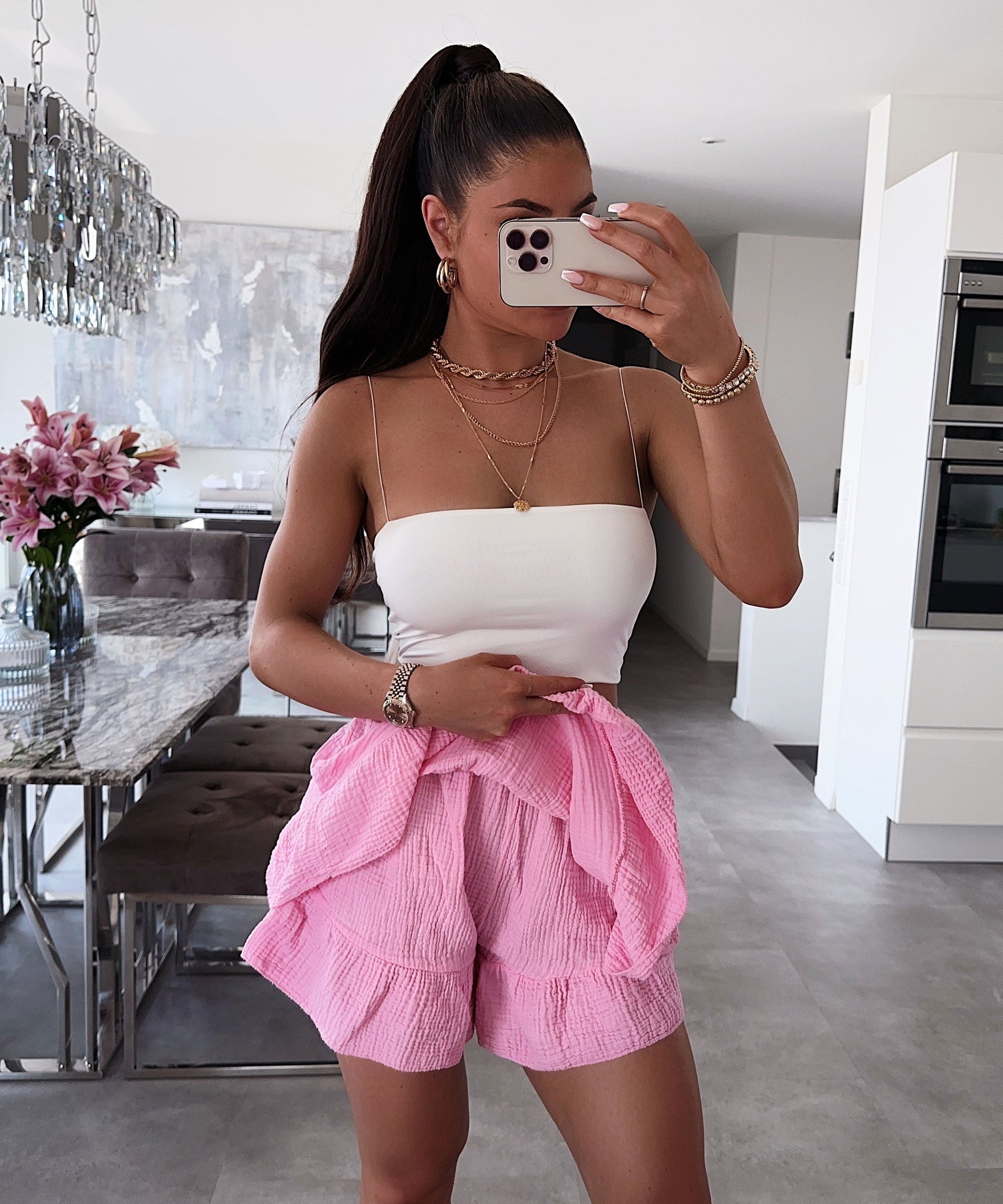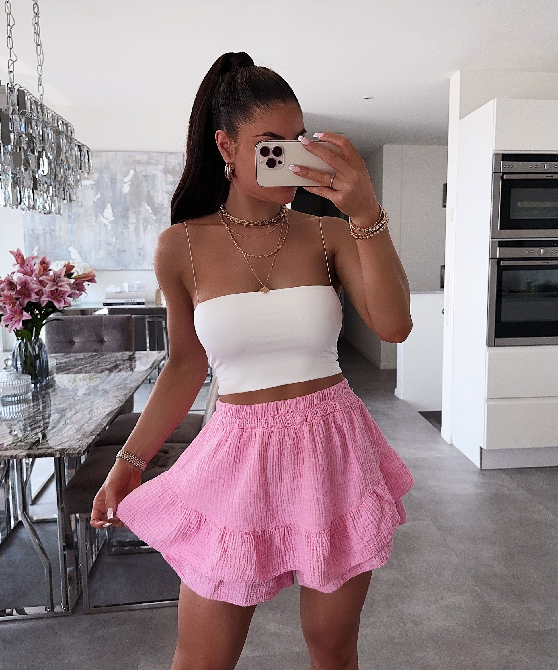 Der Hosenrock Belinda in Hellpink bringt einen frischen und lebhaften Akzent in Ihre Garderobe. Dieses schicke Kleidungsstück kombiniert stilvolles Design mit optimalem Tragekomfort, sodass Sie sowohl bei besonderen Anlässen als auch im Alltag glänzen können. Der elegante Schnitt und die strahlende Farbe machen ihn zu einem unverzichtbaren Bestandteil Ihrer Sommergarderobe.