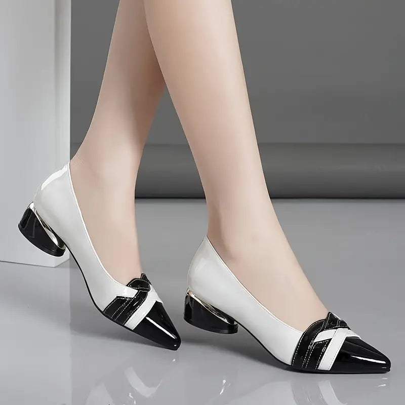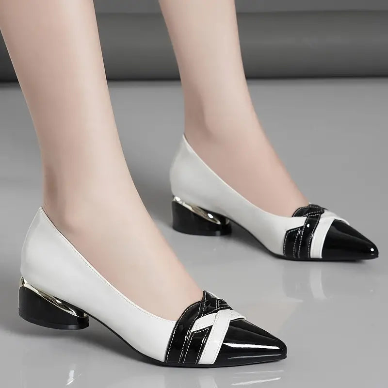 Kontrast Farbe Klotzige Absätze Elegant Spitze Zehe