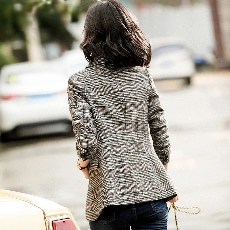 Aus diesem Grund gehört der Coaty | Langer Ärmel Kariertes Damenblazer mit Reverskragen in Ihren Kleiderschrank: