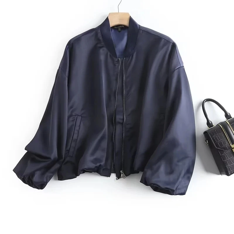 Larha | Damen langärmliger Aviatik-Blouson Oversize mit Zwei-Wege-Reißverschluss
