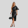 Das Maj | Satiniert Kleid mit einem Schulterband verbindet moderne Eleganz mit einem Hauch von Luxus. Das Kleid besticht durch seinen einzigartigen Schnitt und das schimmernde Satinmaterial, das für einen exquisiten Glanz sorgt. Der einseitige Schulterband-Design sorgt für eine trendige und zugleich elegante Optik, die perfekt für besondere Anlässe ist.