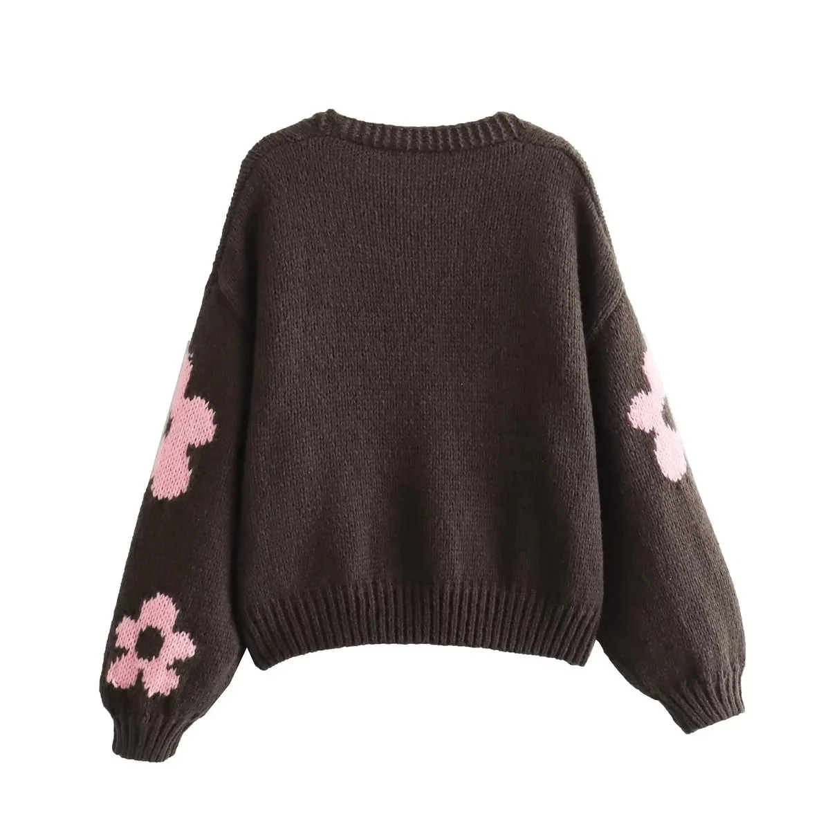 Los | Damen Jacquard Cardigan mit Blumenmuster, elegant und warm