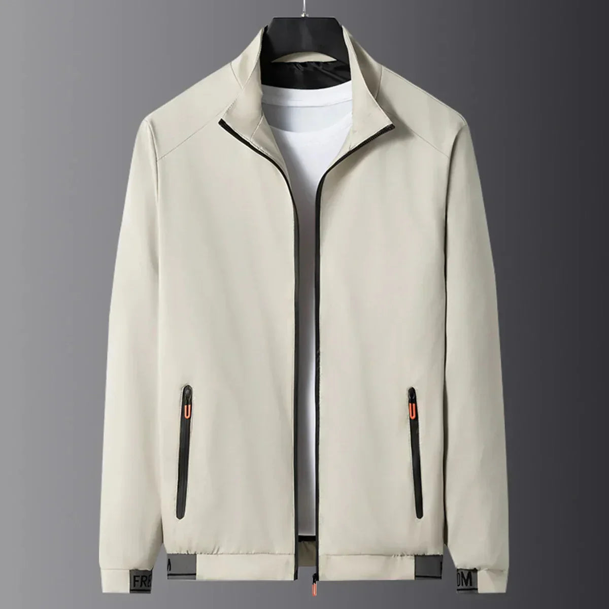 Die Matio | Winddichte schwarze Herren-Zwischenjacke mit Stehkragen vereint modernes Design und praktische Funktionalität. Diese Jacke bietet optimalen Schutz vor Wind und Wetter, ohne Kompromisse beim Stil einzugehen.