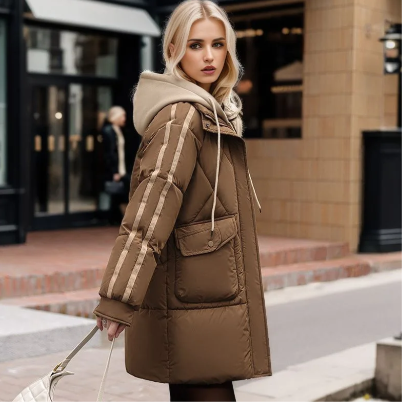 Norinna | Wasserdichter Wintermantel für Damen mit Kapuze, Klappentaschen und Reißverschluss