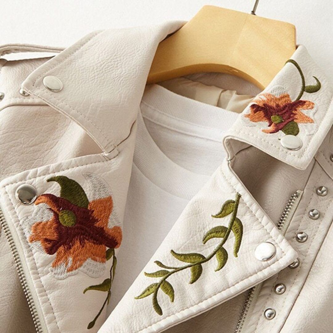 Stilvolle Eleganz: Leren Jacke mit Versierungen und Blumenmuster
