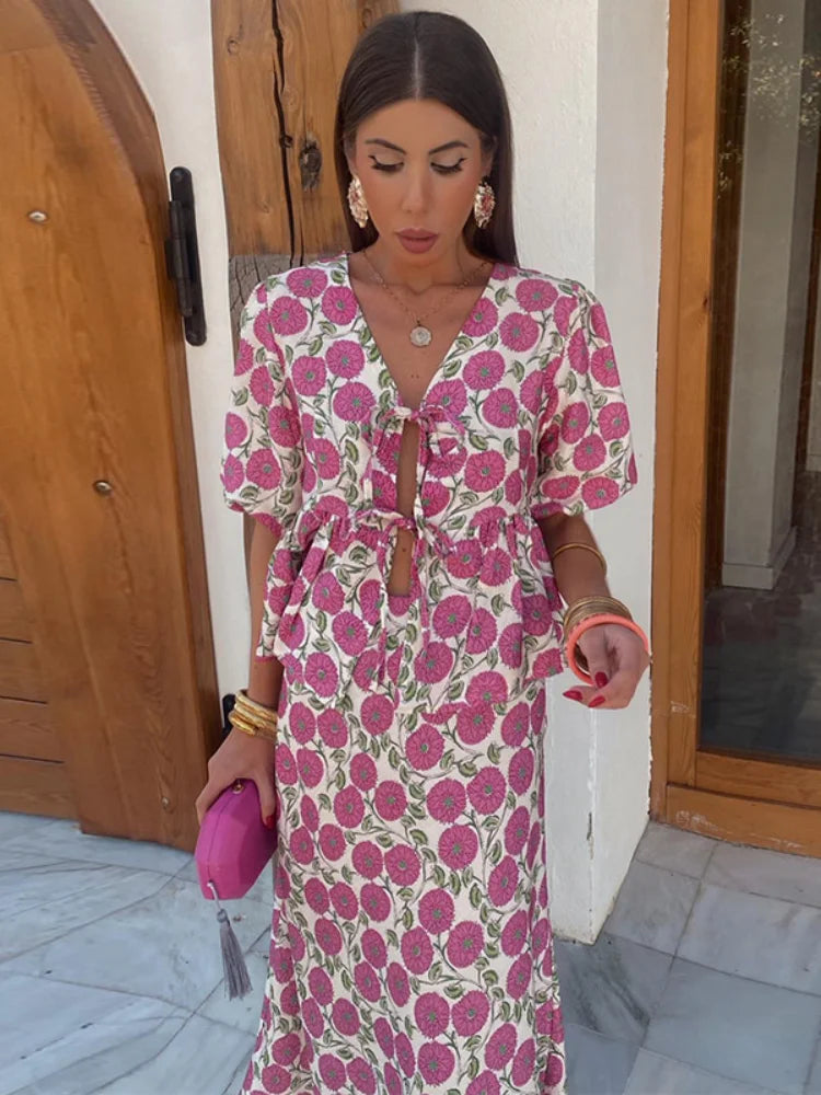 Das Blumenset Mabel ist die perfekte Wahl für Frauen, die Blumenmuster lieben und gleichzeitig Komfort und Stil schätzen. Dieses Set bietet Ihnen die Möglichkeit, Ihren Kleiderschrank mit einem eleganten Ensemble zu ergänzen, das sowohl für besondere Anlässe als auch für den Alltag geeignet ist.