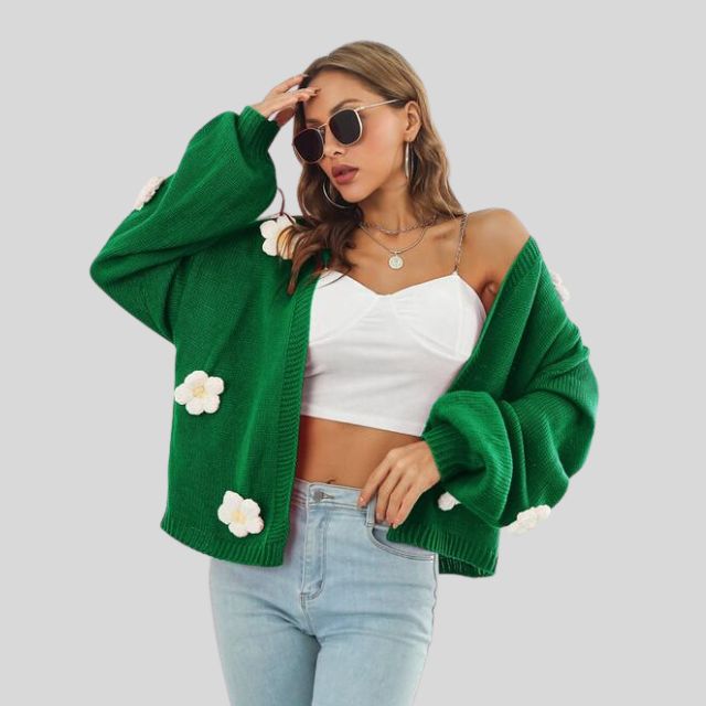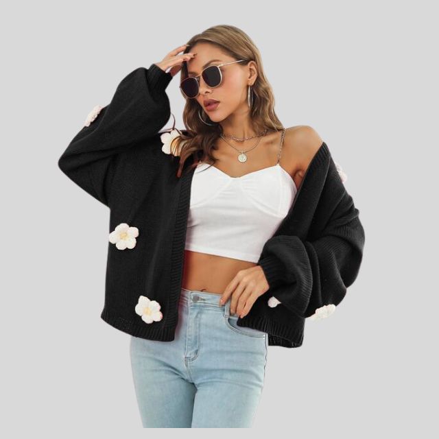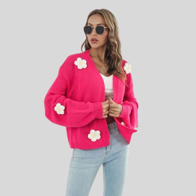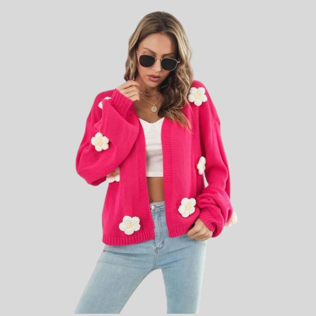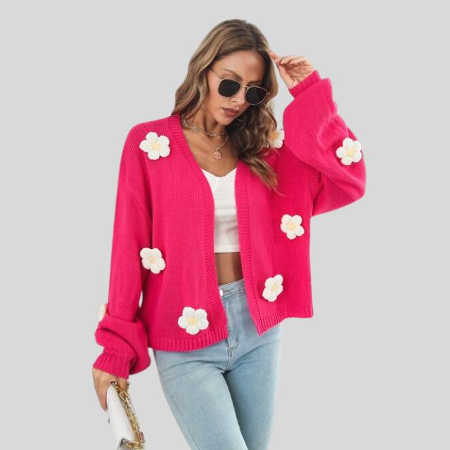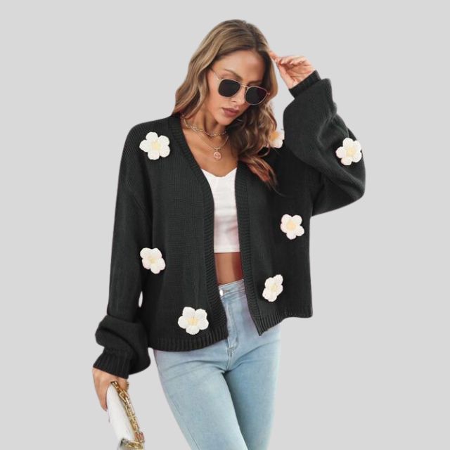 Gigie | Lebendiger Strickpullover mit Blumenapplikation