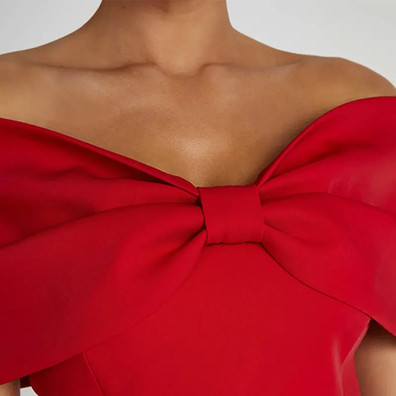 Zaldy | Elegantes Schulterfreies Kleid mit Schleife