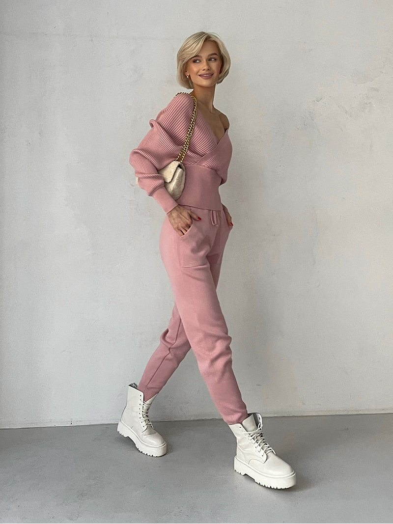 Das „Vie“ 2-tlg. Strick-Set vereint elegantes Design mit maximalem Komfort und ist damit die perfekte Wahl für entspannte Tage und stylische Auftritte. Dieses Set besteht aus einem bequemen Strickpullover und einer passenden Hose, die Sie sowohl zu Hause als auch unterwegs in Szene setzt. Dank der weichen Strickqualität fühlen Sie sich den ganzen Tag über wohl und sehen dabei immer top aus.
