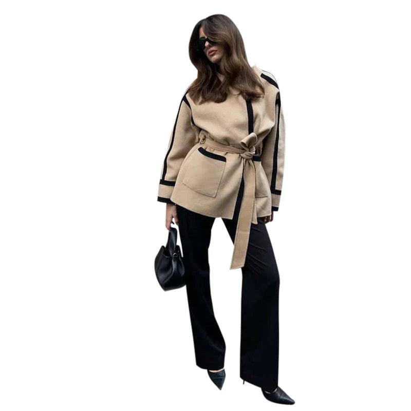 Selm | Patchwork Mantel Damen mit Schnürgürtel Modisch