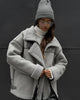 Sentra | Modischer, weicher Wintermantel mit großzügigem Schnitt und grauem Streifenmuster