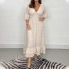 Das Nathalia Midikleid vereint zeitlose Eleganz mit raffinierten Details. Die bestickten Anglaise-Verzierungen und die verspielten Rüschenärmel verleihen diesem Kleid eine romantische Note, die perfekt für besondere Anlässe geeignet ist.
