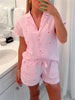 Das blaue Shorts-Pyjama-Set von Theodore ist die perfekte Wahl für erholsame Nächte und entspannte Morgenstunden. Mit seinem eleganten Design und dem weichen, atmungsaktiven Stoff bietet dieses Set höchsten Tragekomfort. Die lockere Passform der Shorts und das angenehm geschnittene Oberteil sorgen für Bewegungsfreiheit und ein entspanntes Schlafgefühl. Ob für warme Sommernächte oder gemütliche Tage zu Hause – dieses Pyjama-Set vereint Stil und Funktionalität in perfekter Harmonie.