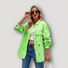 Die Kriss Vintage Washed Verblasst Distressed Denim Jacke bringt einen coolen, lässigen Look in Ihre Garderobe. Mit ihrem einzigartigen, abgewetzten Finish und dem modernen Vintage-Stil wird diese Jacke schnell zum Lieblingsstück. Perfekt für entspannte Tage und stylische Outfits.