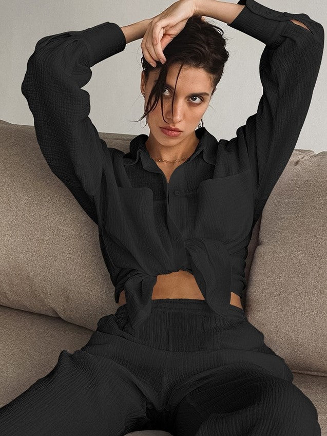 Viy | Langarm-Oberteil und Hochtaillierte Hose im Set