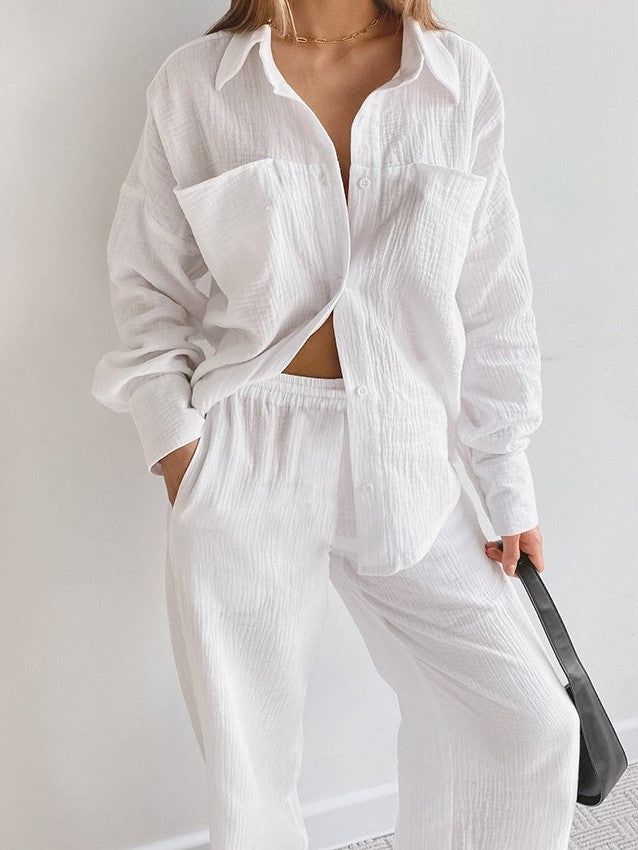 Das stilvolle Langarm-Oberteil und hochtaillierte Hose im Set für elegante Auftritte
