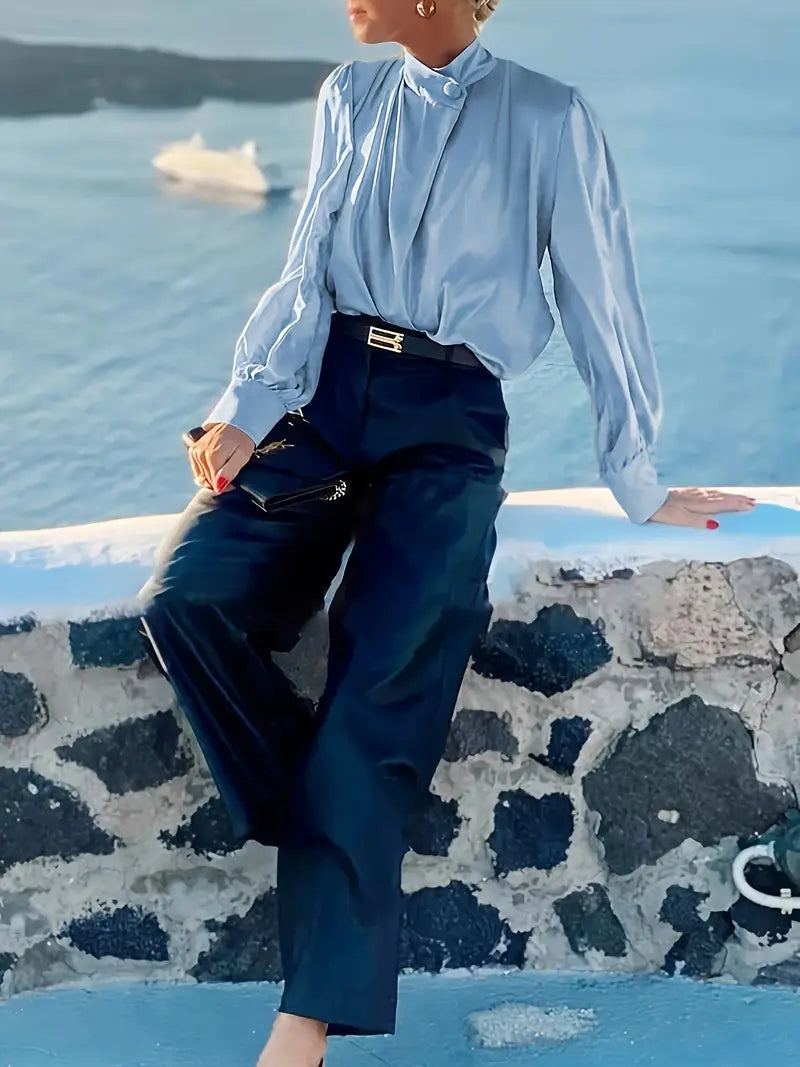 Bluo | Winter-Langarmbluse – Elegantes Satin-Design mit Stehkragen & Ballonärmeln