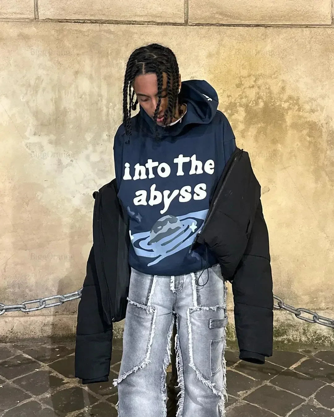 ✓ Stylisches Design mit Statement-Print: Mit dem auffälligen Puff-Print „Into the Abyss“ wird dieser Hoodie zu einem echten Hingucker. Er ist mehr als nur ein Basic, sondern ein modisches Highlight, das sich perfekt mit anderen Outfits kombinieren lässt.