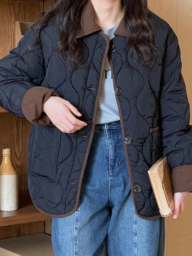 Yra | Blockfarbener Mantel Damen im koreanischen Stil