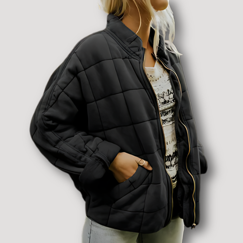 Uros | Reißverschluss Gesteppte Jacke mit Quadratischem Gitter Muster